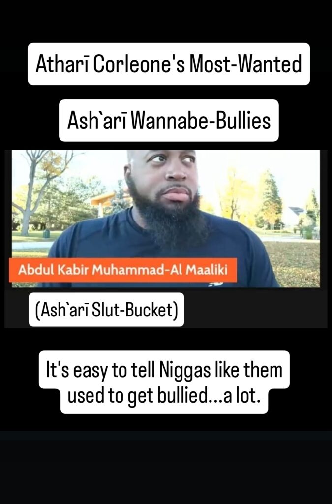 There’s literally nothing “credible” about what this Clown-Ass-Nigga is talkin bout. They’re literally just a Hizbī/Sectarian-Bozo, with an Online/Social-Media Platform. Also, here’s the Hypocritical-Irony: `Abd-ul-Kabīr Muhammad al-Mālikī literally Blocked Gareth Bryant, because they couldn’t “debunk” anything I’ve ever postured theologically. So, the “Screenshots” `Abd-ul-Kabīr Muhammad al-Mālikī claims exists, in which they pontificated that Members of the Ash`arī Social-Club “pressed” or were sent to “look for” Gareth Bryant…💯%-Mythos/Fallacy.