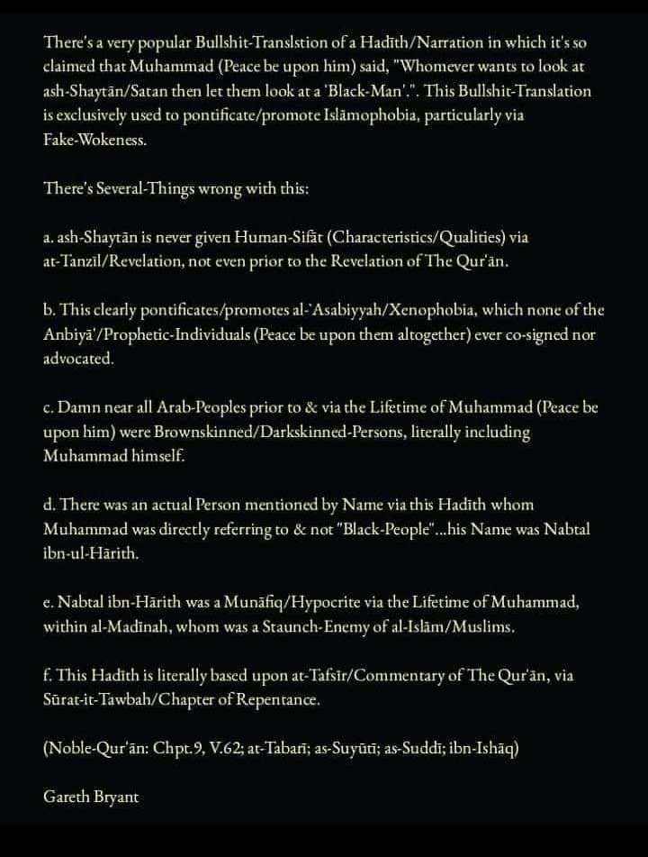 This-Issue will always be relevant & important, so long as there’s Muslims whom continue to view Muslims whom’re Afro-Peoples as being “Less-Than”, of a “Slave-Origin”, “Evil”, etc. And, Muslim Afro-Peoples will continue to deal with this, as an Issue, so long as they continue to buy into the “Bilālian-Mythos”. The “Bilālian-Mythos” began Centuries ago, when Muslims began to buy into the Pseudo-African Origins of Bilāl ibn-Rabāh (May Allah be pleased with them). This was initially used to pseudo just Muslims via the Middle-East to continue manipulating Afro-Peoples via Slave-Labor. Then, it was imported/exported to the Western-World, as Afro-Peoples via the United States began to accept al-Islām. Particularly/especially via the Muslim-Community founded/headed by Wallace Poole (May Allah mercify&forgive them), after they led their Constituents from the Pseudo-Islāmic Teachings of the NOI/Nation Of Islam founded by Walī Farād (Founder/False-God of the NOI) & then taken over by Elijah Poole (False-Prophet of the NOI): the Father of Wallace Poole.