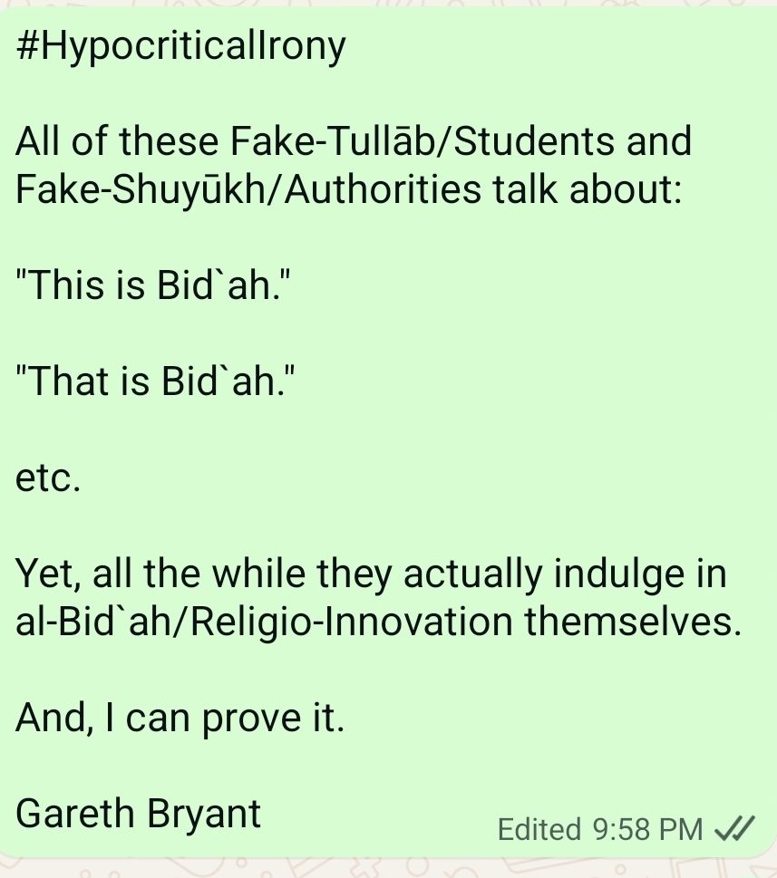 Literally, all of the aforementioned are Bid` (Religio-Innovations) which’re done amongst Muslims. (Conveniently) no one seems to care about these Specific-Bid`, but have all the Time in the World to Bitch&Moan about Bid` which don’t even oppose ash-Sharī`ah/Islāmic-Law. Going back to the Linguistic-Meaning of Bid`ah: Some New-Shit…not All-Bid` constitutes Violation of ash-Sharī`ah.