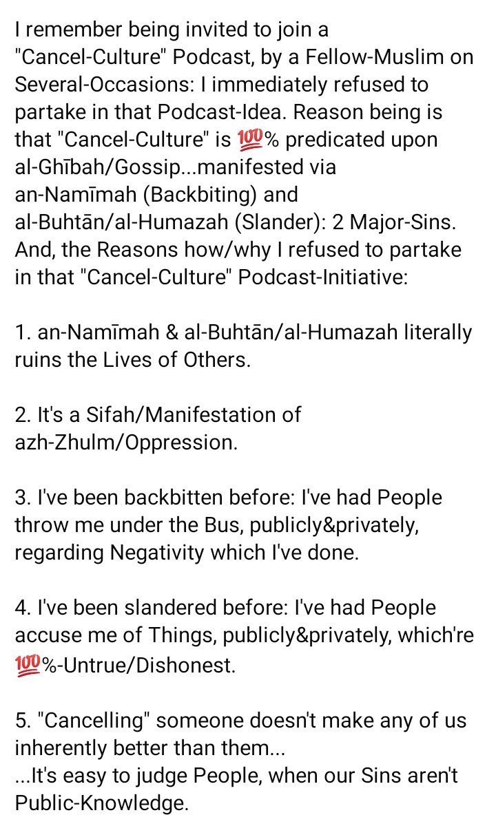 Amongst Muslims especially, the Proliferation of “Cancel-Culture” has rooted itself so deeply, that even if/when Persons accept al-Islām & become Muslims they’re religio-socially crucified via Fellow-Muslims. Here’s Examples of precisely what I’m directly referring to: