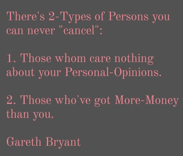 As per my Holistic-Observations: one of the Reasons how/why “Cancel-Culture” has become so popular via the Modern-World is because it’s a Manifestation of Judgmentalism. And, one of the Easiest-Things for any Human to be is a Judgmental-Person. Judgmentalism is the Foundation of “Cancel-Culture, without any Doubt.