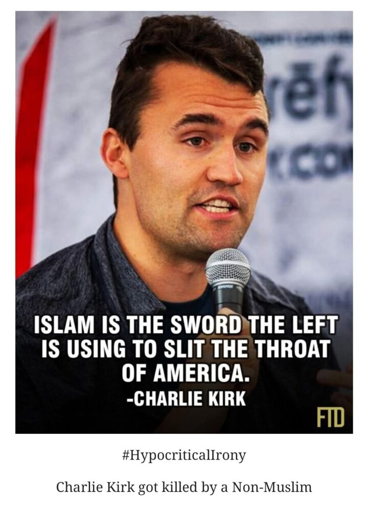 This-Risālah/Article is predicated upon the Murder of Charlie Kirk: Notorious-Islāmophobe, Notorious-Xenophobe, Notorious White-Supremacist, etc. Charlie Kirk was basically the Non-Jewish Version of Ben Shapiro. Even to the Extent of accusing al-Islām of being a “Sword used by the Left to slit the Throat of America”.