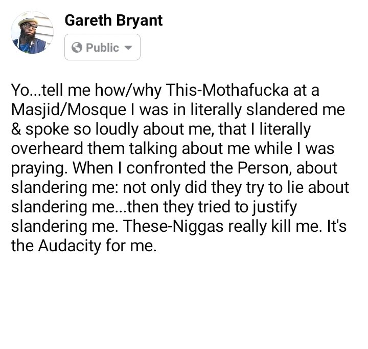 For the Record: I never confronted the Person in any Disrespectful-Way, nor did I express any Aggression against them. I did, however, verbalize&express Anger against the Person regarding what they said against me which was 💯%-False. The Person who’s the Subject of This-Post…That-Mothafucka had the Audacity to actually pretend to not say what they said while I literally overheard them talking Untrue-Shit about me, and they spoke so loudly that I was able to hear them while I was praying. I was actually angrier that they lied about slandering me as opposed to actually slandering me. Not only that, but after finally) admitting to their Goofy-Shit: they then tried to justify the Slander. And, them trying to justify the Slander was worse than them lying about slandering me.
