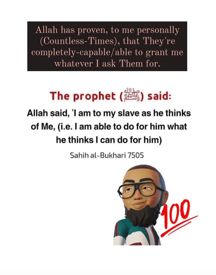 I know, for a Fact, that there were Times via my own Lifetime: I’ve asked Allah for Things, for Things to occur/happen, for me to be protected from People/Things, for Extended-Life, for Health, for Capabilities/Abilities, for Success, for Guidance, etc. And, in spite of Various-Times me not even deserving what I even asked for: because I asked Allah for it They granted it to me.