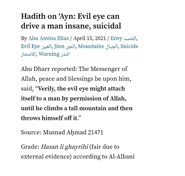 The following are 2 Revelatory-Texts showing just how serious an-Nazhr/al-`Ayn really can be. Sadly, so/too many People (Fellow-Muslims included) honestly ignore the Reality of the Negative-Effects of an-Nazhr/al-`Ayn. Worse yet, there’s actually Muslims who’ll audaciously/arrogantly claim that an-Nazhr/al-`Ayn are “Unreal/Ficticious”.