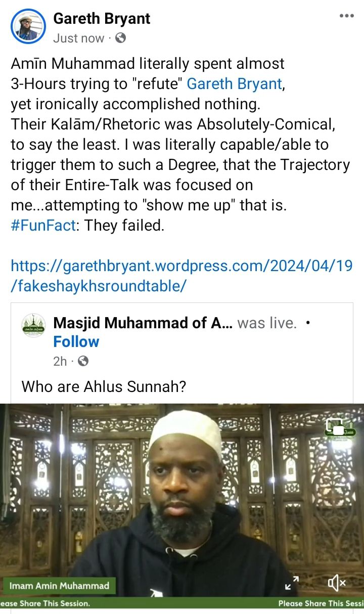 My Holistic-Interactions with Amīn Muhammad, Na`īm `Abdillah, Fahīm Lea, etc. had provoked/promoted me to author Several-Articles against their Pontification/Promotion of Unjust-Takfīr against Fellow-Muslims whom’re Non-Ash`arīs. The Articles which I’ve written, ironically: literally none amongst them were even capable to responding to anything I detailed. Literally, only my Sibling of the Pen: Tālib “Ash`arī-Papi” Nathaniel…they alone stepped-up to the Plate to even combat what Gareth “Abū-Yams” Bryant authored. Literally, for the Entire-Month of Ramadhān-1445, A.H.: Team-Ash`arī was scared&silent…Team-Salafī couldn’t decide whether they wanted to salute me or refute me…Team-Atharī felt Some-Type/Kind of Way because I did what they wanted Lavotte Saunders (the Atharī-Star) to do. Full-Disosure: there were even those amongst Team-Atharī whom spread Lies & claimed that Lavotte Saunders “rejected” my Articles. But, contrary to this: when I spoke with Lavotte Saunders personally they respected/appreciated my Writings.