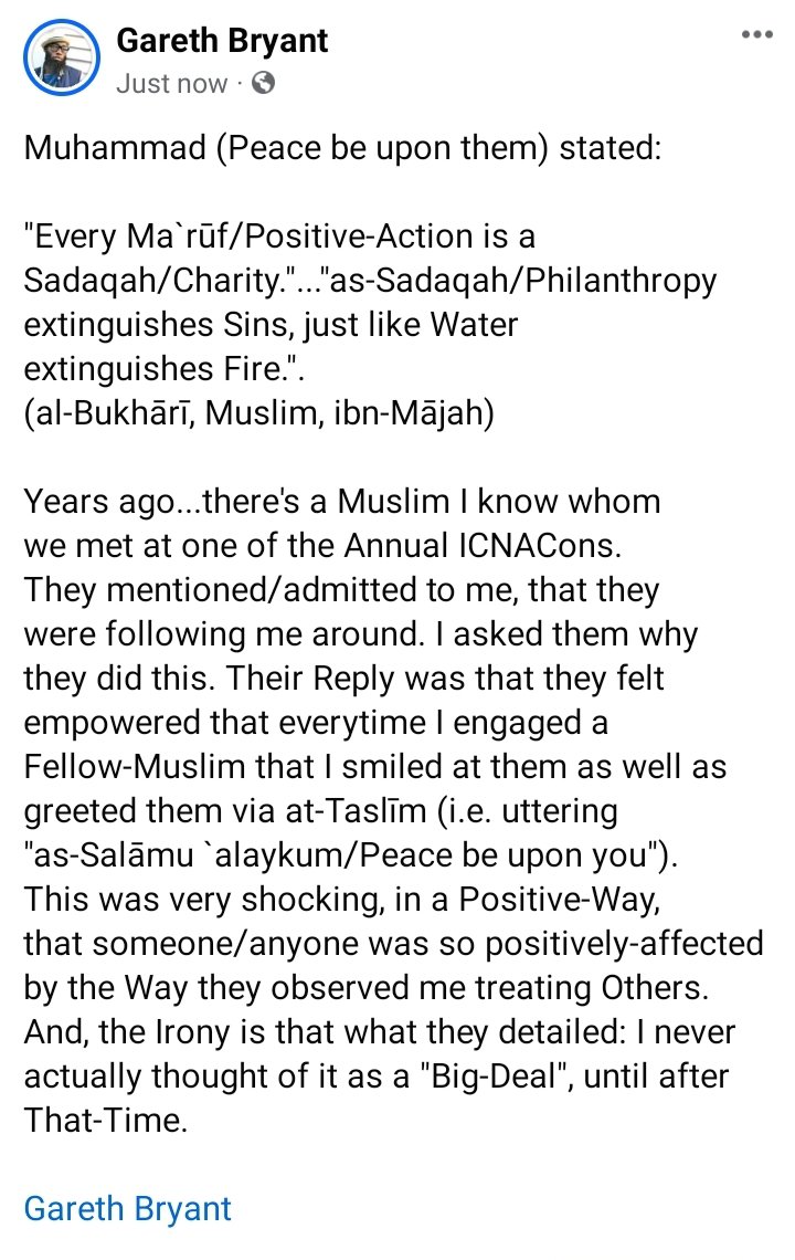 There’s Persons whom I know/know of via Real-Life, whom I see via In-Person regularly, who’ve personally thanked me for being who I am for them: Fellow-Muslims, Non-Muslims, Relatives, Non-Relatives, Childhood-Friends, Neighbors, Former-Schoolmates, Fellow Co-Workers, those whom I serve via my Chaplaincy-Profession (Patients, Loved-Ones of Patients), etc.