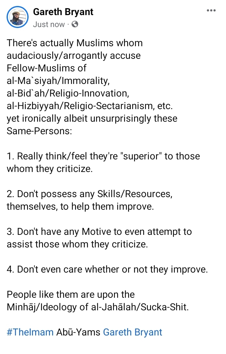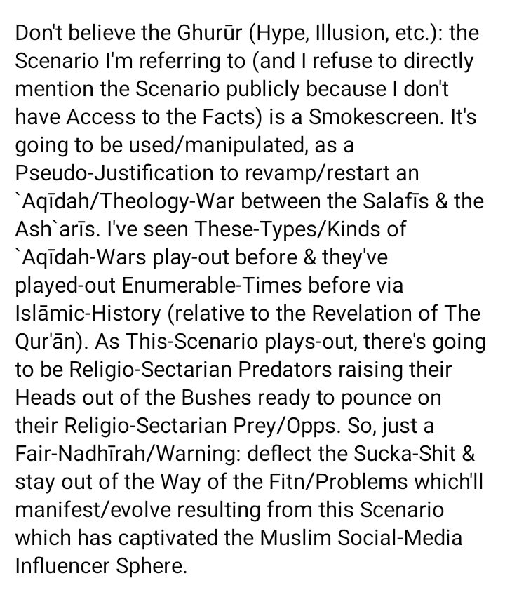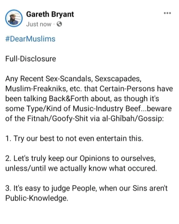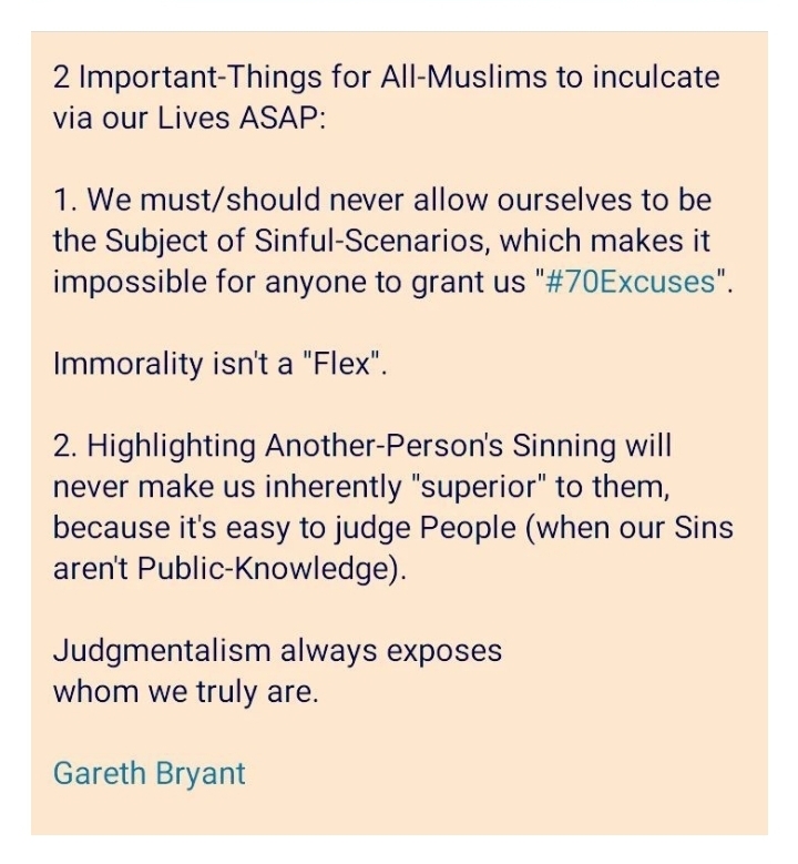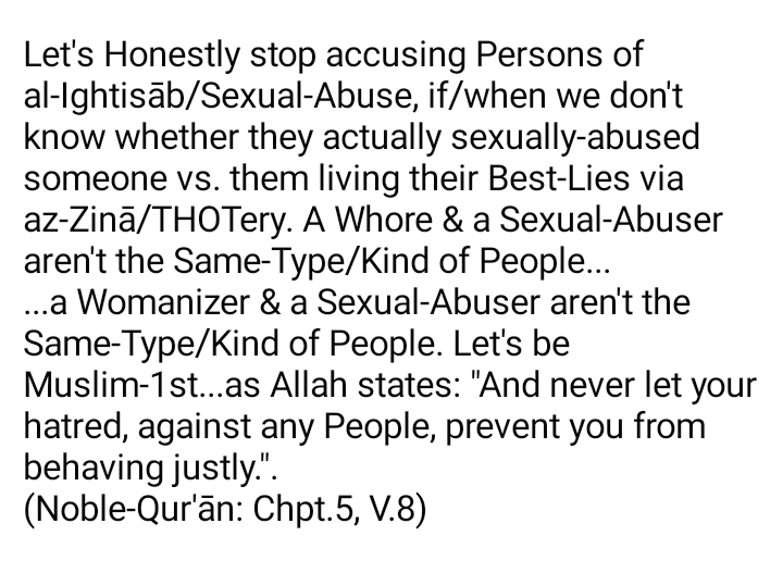 Sadly, Today’s-Muslim is too comfortable with indulging in Ghībah/Gossip-Culture. More-Commonly, this is known as “Cancel-Culture”. There’s Certain-Persons whom’re always in the Mix, when it comes to knowing the Affairs of Others. Equally, there’s just as many Certain-Persons whom find knowing the Flaws/Sins of Others as al-Matā`/Entertainment. Sexual-Scandals (arguably more than any other Ithm/Sin) is at the Top of the Bucket-Lists of Most Nosey-Ass People. But, for People to be that concerned with “Who’s Fuckin Who”…that’s a Theological-Issue/Problem. Allah forewarns us of the Islāmic-Prohibitions of: Presumption, Assumption, Espionage, Backbiting, Slander, etc.