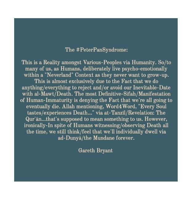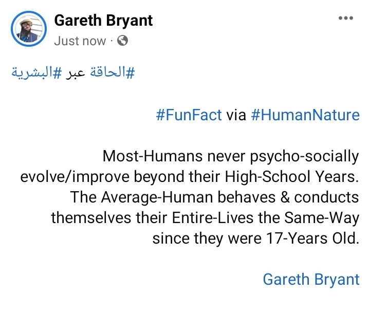 Immaturity is a Spiritual/Psycho-Emotional Pathology. People refuse to admit it, but it’s precisely what it is. Most-Persons really refuse to evolve/elevate themselves. (As a Good-Student of Human-Nature/Behavior) I’m able to look at Various-Persons, via Various Walks-Of-Life, etc. and assess that the Way they show-up in the World currently is exactly how they showed-up when they were Teenagers. This results in observing how People eat, sleep, dress, walk, talk, handle their Personal-Hygiene, their Literature-Intake, the Kinds/Types of Entertainment they enjoy/indulge in, etc. Literally, all of this directly/overtly paints Vivid-Pictures of the Human-Lives we engage with daily.