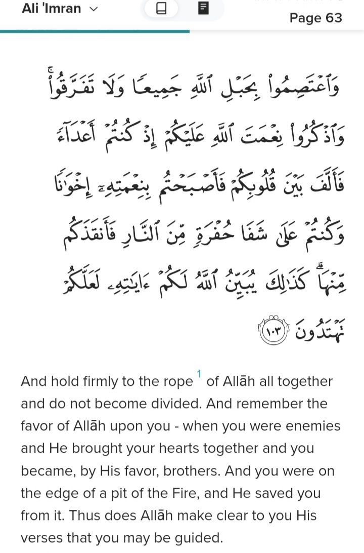 Allah is telling the Muslims to always be brotherly towards one another…to consistently be the Allies of one another via al-Islām. Allah establishes clearly, that it’s impossible for the Muslims to be united upon anything if not Guidance. The Habl/Rope-Of-Allah is the Hidāyah/Guidance of al-Islām by default/definition.