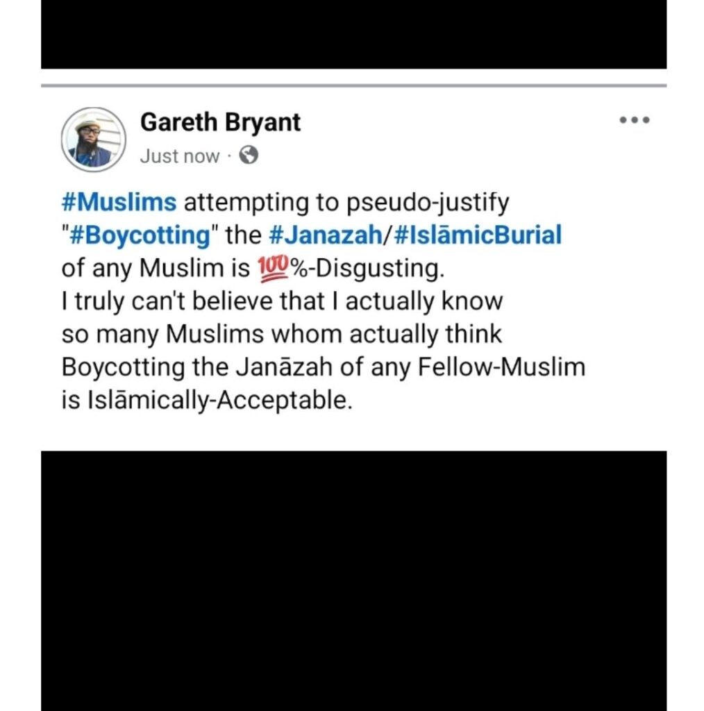 It dawned on me, that I’d never authored about the Back&Forth Convo had with This-Clown, regarding them trying to “boycott” the Janāzah of a Fellow-Muslim. The Person & I were engaged via an Intense-Discourse, as per “Boycotting” any Janāzah of any Muslim. To put it plainly: the Person absolutely had 0 Revelatory-Proofs to ever possibly justify “boycotting” the Janāzah of any Fellow-Muslim. The Adamant-Nature of This-Person trying to “convince” me, to “boycott” the Janāzah of Idrees Poston: it’s utterly disgusting to say the least.