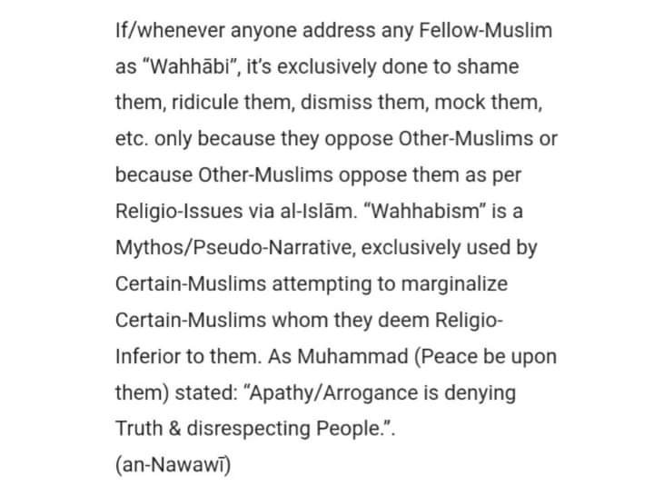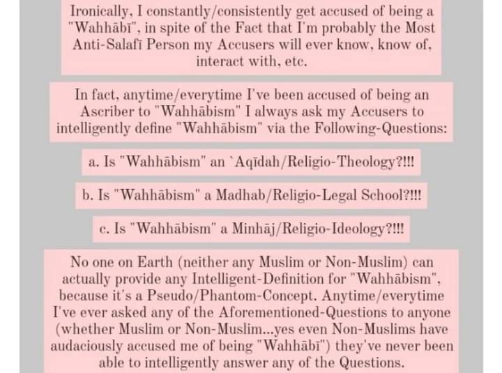 Far too often…anytime any Muslim opposes Religio-Beliefs/Practices which aren’t predicated upon at-Tanzīl/Revelation: Certain-Muslims love to pseudo-label Fellow-Muslims they deem their Religio-Sectarian Opps as being “Wahhābī”.