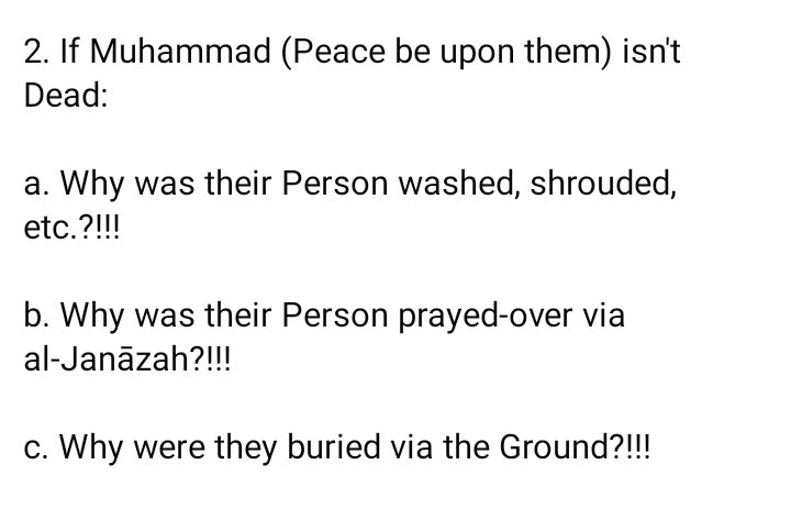 So, for any Muslim to accuse any Fellow-Muslim of (either directly or indirectly) not possessing love for Muhammad, simply because they refuse to celebrate the Births of Dead/Presumably-Dead People…