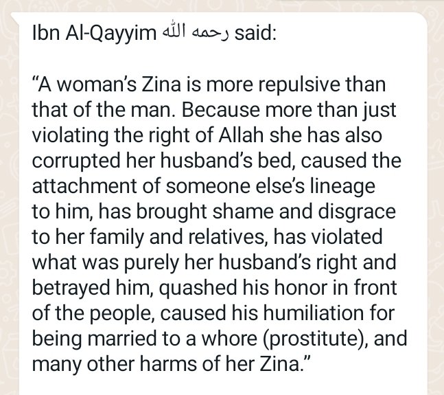 I actually know Countless Muslim-Men whom literally make it their Business to cheat on their Wives via Impunity. They really think/feel that they’re Entitled to be Adulterers, yet in the Same-Breath dare to judge any Woman for being an Adultress. THOTery isn’t Gendercentric…any Man or any Woman can be a THOT. So, let’s not ever perceive that the Rules-Of-Morality only apply to Women. No, they equally apply to both Men & Women alike. I’ve constantly/consistently confronted Countless-Scenarios of Muslim-Men I personally know: they’ll attempt to excuse Other Muslim-Men for being Adulterous. Yet, ironically, they’ll jump out the Window to condemn any Muslim-Woman who’s done precisely what the Muslim-Men they try to defend has done. It’s both hypocritical & disgusting…I truly despise it. I operate via a Personal-Principle: You either judge everyone or no one…you either give everyone or no one a Pass.