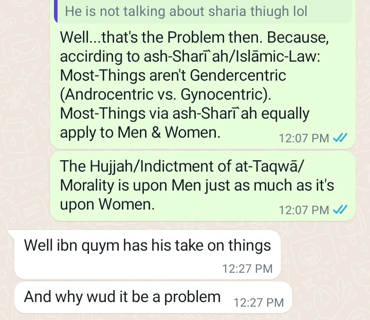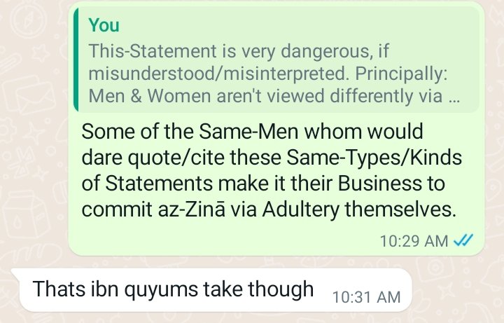 And, it then became pointless to discuss Things any further. My Entire-Point was & still is that if/whenever Persons take Statements of Religio-Academic/Historical Individuals, there’s got to be Comprehension at play regarding what’s cited/quoted from them. As Latter-Peoples, we don’t have the Islāmic-Justification to just run with the Statements of Former-Peoples just to pontificate/promote Biases which we may harbor via our Minds/Hearts. And, as per the Convo I shared: it’s very obvious to me-The Person I conversed with had a Bias-Based Agenda.