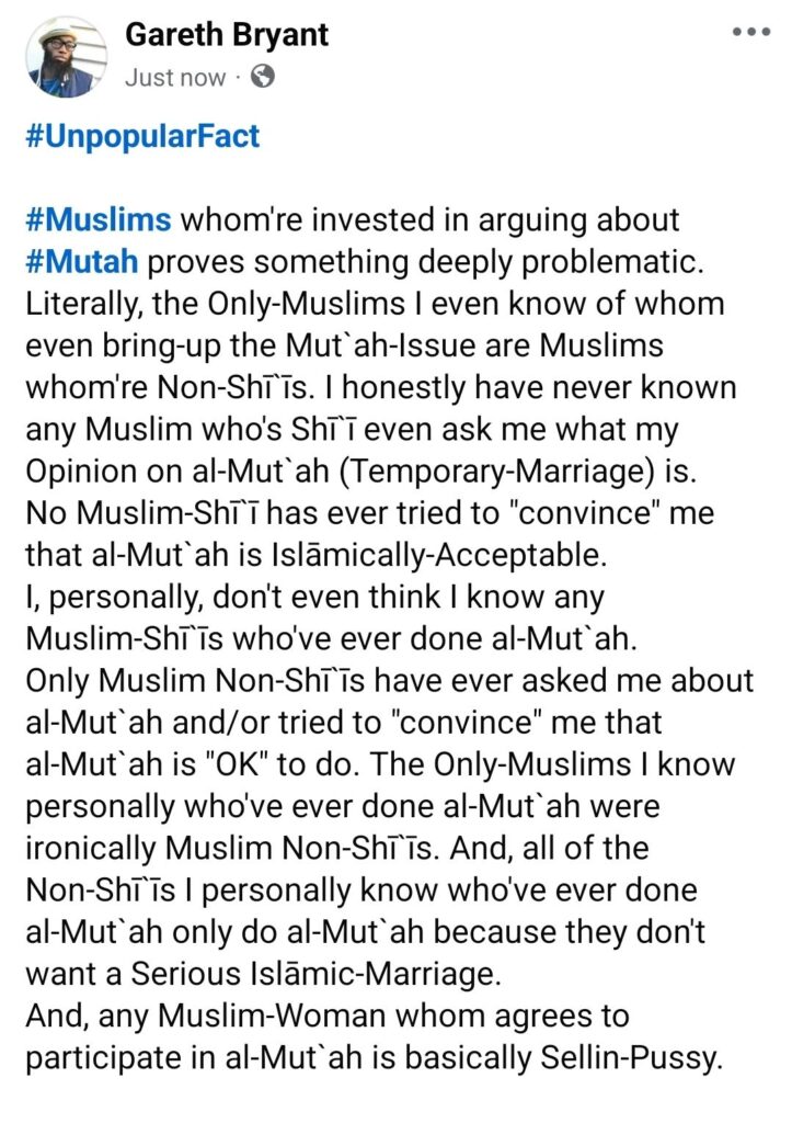 Basically, the Pseudo-Piety Committee scopes-out Fellow-Muslims, for so-called “Marriage”, “Co-Wives” via “Polygyny”, etc. But, in All-Reality, they’re just trying to consolidate the Salafī-Versions of “Diddy-Parties”: like that Notorious Girl-On-Girl Orgy @ Germantown-Masjid via Niggadelphia, Pennsylvania. And via that Same-City: the Tajdīd-Institute & `Uthmān Dan Fodio Masjid were the Subject of Marital-Scandals involving “Underage-Females” @ the Ash`arī-Motel. The Fake-Righteous Crew bring their Mistresses to Masājid/Mosques to attempt “Islāmizing” their Harām/Forbidden-Relationships. And, these Clown-Ass Niggas are actually allowed to marry their Mistresses: basically as a Personalized-Reward for committing Adultery. `Abd-ul-Kabīr Muhammad al-Mālikī publicly bragging about committing al-Misyār: the Salafī-Version of al-Mut`ah (Temporary-Marriage).