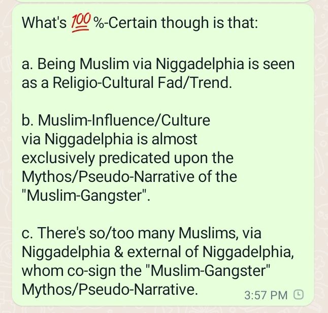 The Sabab/Reason how/why I’m so fond of the Socio-Secular Works like “Miseducation Of The Negro” & “The Philadelphia Negro” is because the Maslahah/Purpose of those 2-Works is to learn/understand Niggas. Muslim & Non-Muslim Afro/Latino-Peoples (Yeah…Spics is Niggas en Espanol) have a History via the Western-Hemisphere unlike any Human-Demographic. Their jointly-connected/intersected American-Experience is 💯%-Inseparable. Now, specifying Muslim Afro/Latino-Americans…instead of utlizing al-Islām as the Ultimate-Tool to correct the Human-Hāl/Condition: Muslim Afros/Latinos only use al-Islām as an `Udhr/Excuse to switch Slave-Masters. Muslim Afro/Latino-Peoples are largely/mainly (from a Religio-Social Paradigm) just NWA (Niggers with `Aqīdah/Islāmic-Theology). In spite of “The Miseducation Of The Negro” & “The Philadelphia Negro” being penned/authored during the 1st-1/2 of the 20th-Century, C.E.-Literally everything which Carter G. Woodson & W.E.B. DuBois put on Paper is not only truthful/honest…it still occurs today.