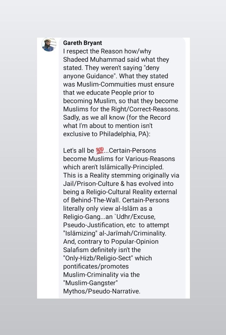 Albeit I’ve never lived in Philadelphia (I’ve only been a Philly-Visitor)…I’ve most definitely had to directly confront/address the Oppressive-Onslaught of Muslim-Criminal Culture via Philly. For example, when I was Salafī (from 1421-1428, A.H./2000-2007, C.E.): that 7-Year Duration was literally the closest I ever got to being a Gang-Member. And, via the United States: Salafīs nationwide have always gotten an Anbundance of their Hizbī/Sectarian-Cues from Philadelphia…this 💯%-Fact/0%-Fiction.