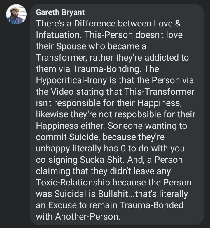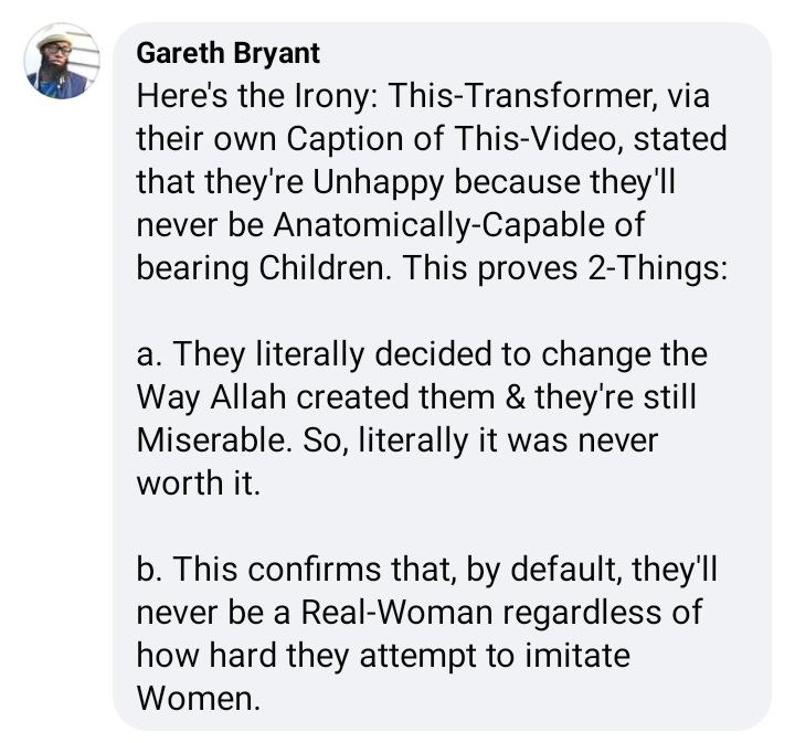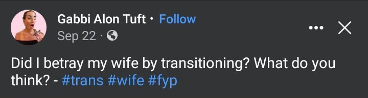 The Author of This-Post became a Male-Transformer: born a Bio-Male/Man & has decided to live their Best-Lie as a Fake-Female. The Woman they’re married to actually attempted to justify their Behavior. They did so by pontificating/claiming that implying that had they not co-signed this their Husband would’ve attempted/committed Suicide.