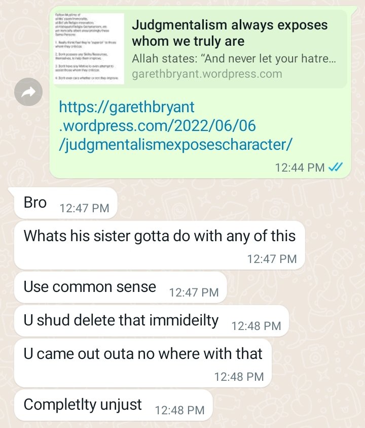 Via the Video Daniel Jou literally speaks with 2-Tongues. On the One-Hand, they mentioned that they’re not a Person-Of-Knowledge. But, immediately on the Other-Hand audaciously/arrogantly attempts to “correct” a Person-Of-Knowledge & ironically being Dead-Ass Wrong: their Niyyah/Motive corrupt, their Approach ill-mannered, their Posture haughty, etc. And, the Fact that they actually tried to use the Crowd against William Webb, as though they were at a Live-Version of Verzuz: I definitely conclude this to be one amongst Daniel Jou’s Most-Immature Antics I’ve ever seen recorded about/from them. Persons like Daniel Jou refuse to operate via Usūl/Islāmic-Principles. As I always tell People: Judgmentalism always exposes whom we truly are.