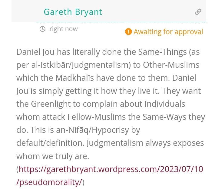 Daniel Jou is a Bitch: they’ve 0-Entitlement/Justification to complain about any Criticism from anyone against them. They actually think/feel they’re Islāmically-Entitled/Justified to talk Shit about whomever they want, judge whomever they want, etc. But, yet (via the Same-Breath), they expect Others to a “Pass”, “70-Excuses”, etc. Nah…Nigga: Daniel Jou is experiencing ash-Shar`iyyah (Retribution/Payback), directly resulting from what they’ve done to Others & coming back to haunt them. They’re simply getting it how they live it. Daniel Jou, as per how the Salafīs/Madkhalīs treat them, has to charge this to the Dunyā/Mundane.