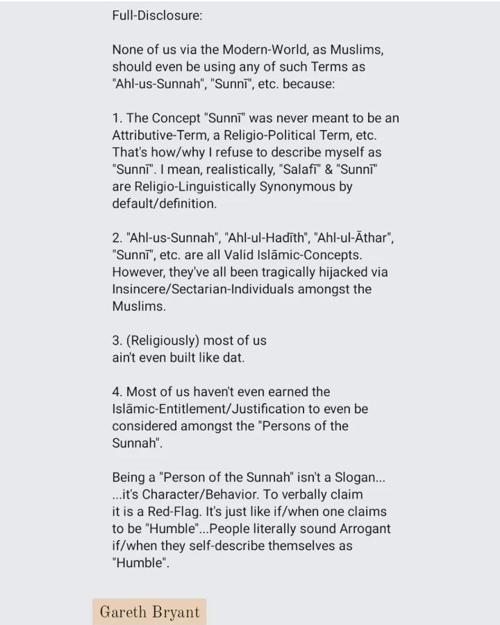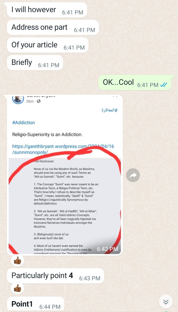 The Maslahah/Purpose of such a Sharh…it stems from a Convo I had, about the Previous-Article, with my Sibling of the Pen: Tālib Nathaniel. Gareth Bryant & Tālib Nathaniel had spoken at length, regarding the Feedback which Tālib disagreed with Gareth about, concerning a Specific-Juncture with the Article itself. I’ll detail precisely what that is. Tālib Nathaniel expressed/verbalized to Gareth Bryant, that they strongly disagreed with the Following as per Point Number-4 below.