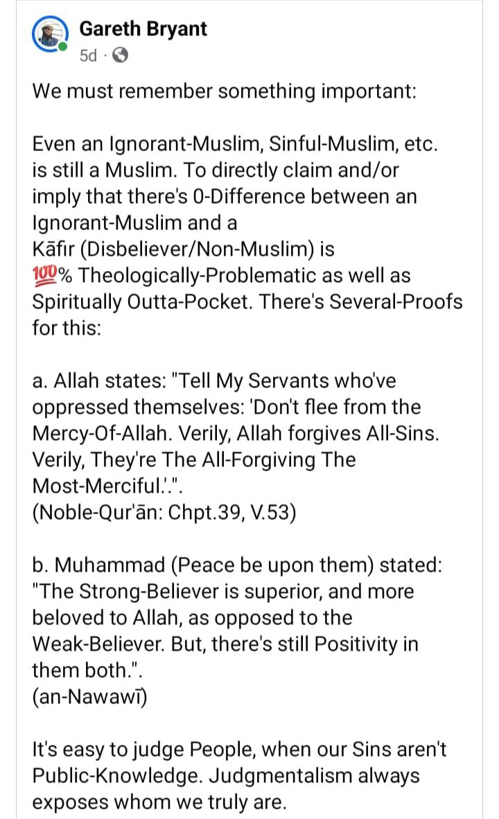 Now, obviously, not every Muslim is Number-2. However, that’s way different than someone not being Number-1. (Unfortunately) Tālib Nathaniel must’ve thought/felt that Gareth Bryant was (alluding to the Zhann/Assumption) saying if someone isn’t Number-2, then they’re automatically not Number-1. And, that was sonething I picked-up on very swiftly. And, equally, I made it very clear to Tālib Nathaniel that Gareth Bryant isn’t implying that…not at all!!!