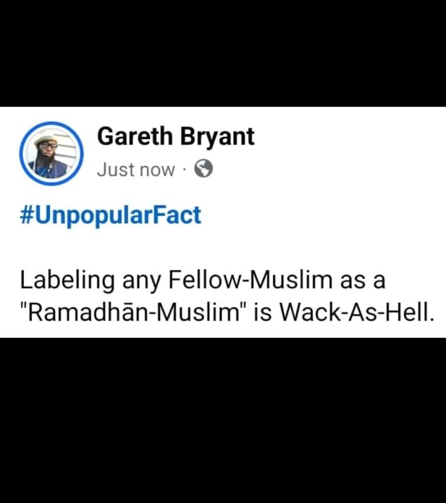 These-Terms “Ramadhān-Muslim”, “Jumu`ah-Muslim”, “`Īd-Muslim”, etc. were incepted via Judgmental-Muslims exclusively to pontificated/promote Pseudo-Piety/Fake-Righteousness. People invented these Titles to make themselves seem “Religio-Superior” to Other-Muslims. It’s easy to judge People, when our Sins aren’t Public-Knowledge.