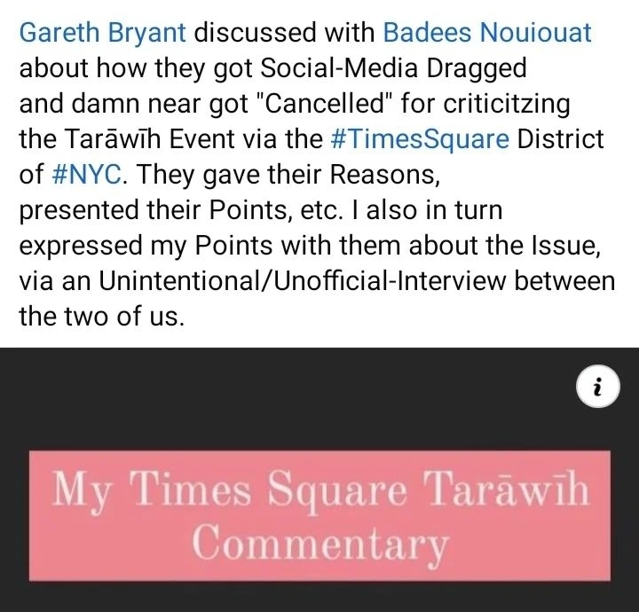 Badees Nouiouat admitted to me, that they got Social-Media Dragged because of their Aversions to the Times Square Tarāwīh Events. However, never did I think that it’d ever be taken as far as it had been.