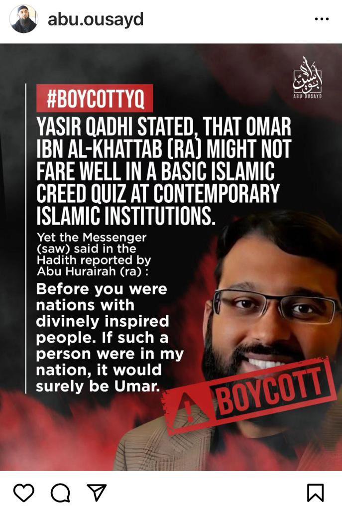 It’s because Yāsir Qādhī was once a Salafī, and since they abandoned as-Salafiyyah: the Salsfīs despise YQ immensely. Ever since YQ has been forthright & deliberate, as per speaking against as-Salafiyyah: they’ve had a Target on their Back. The Salafīs are truly against anyone whom admits & exposes the Reality, that as-Salafiyyah is just as negative/toxic as any/all other Ahzāb/Religio-Sectarian Groups which the Salafīs themselves criticize. The Salafīs probably hate YQ more than they hate me.
