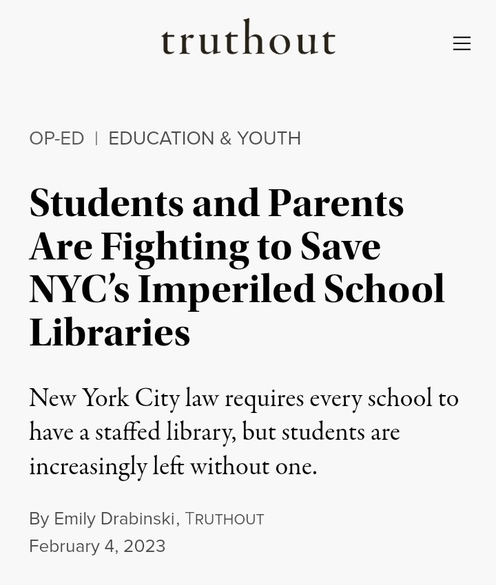 I remember being in School. One of my Favorite-Places has always been Libraries. There was 1-Day, during the Summer-Of-2023 when I walked-thru my Grandfather’s Ole-Neighborhood…the Block they used to live on. I remember always going to the Public-Library on That-Block…That-Library has been closed-down. I was in Complete-Shock: it was the 1st-Time in my Life, that I witnessed a Public-Library closed. The Building completely demolished & with it Priceless Childhood-Memories. So, when I came across This-Story, about the Lack-Of-Funding for Libraries/Library-Staff via NYC Public-Schools…I’m taking this personally.