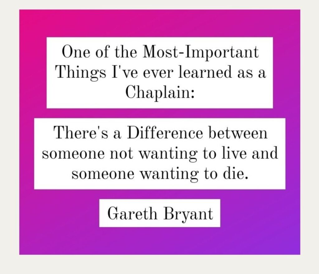 As a Chaplain (Counselor/Therapist): I’ve personally encountered Various-Persons either expressing/verbalizing that they no longer see the Point of Life and/or express/verbalize their Contemplations/Desires, Motives/Intents, etc. to commit Suicide. My Niyyah/Motive is to thoroughly decipher the Difference between being Unlively & being Suicidal. Now, is there Correlation between Unliveliness & Suicide…Absolutely. However, does this mean that both are exclusively a Causation of one another…Absolutely not.