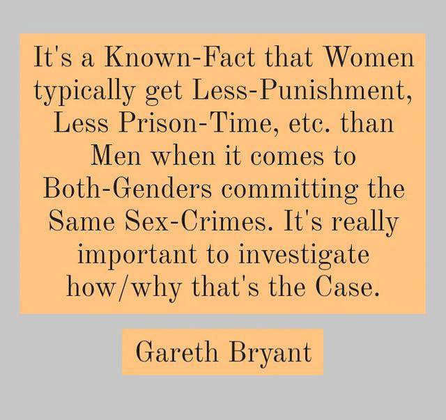 No one deserves to get more/less Punishment for Sex-Crimes, if Persons have committed the Same-Types/Kinds of Crimes of the Same-Caliber. This Gendercentric-Disparity truly sends a Horrible-Message. It implies that Women can always get “slapped on the Wrist” as per Certain-Crimes, but Men will get grilled as per those Same-Types/Kinds of Crimes.