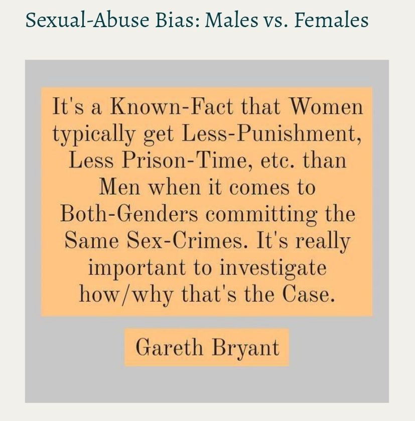 No one deserves to get more/less Punishment for Sex-Crimes, if Persons have committed the Same-Types/Kinds of Crimes of the Same-Caliber. This Gendercentric-Disparity truly sends a Horrible-Message. It implies that Women can always get “slapped on the Wrist” as per Certain-Crimes, but Men will get grilled as per those Same-Types/Kinds of Crimes.