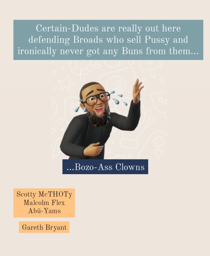Now, I’m going to make this very personal at This-Point: I wish a Bitch I’m with would dare propose some Goofy-Like this to me!!! There’s 0-Way that Gareth Bryant (a. Being Muslim-1st & b. Being a Grown-Ass Man) would ever knowingly co-sign “sharing” any Woman whom I’m with. Keep that Goofy-Shit on That-Side…that will never be tolerate on This-Side!!! I literally have too much Religio/Personal-Respect for myself, to ever tolerate/accept any Woman whom I’m with to ever even think they can disgrace me via This-Manner. I swear by Allah: I’d rather be alone for the Rest of my Life, as opposed to tolerating/accepting any Woman doing this to me!!!