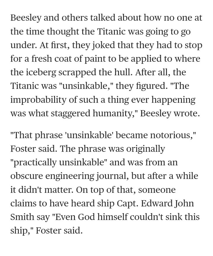 Also, as well, there’s been those whom aimed to profit off of the Mythos/Nostalgia of the Titanic…one Particular Company has been charging Adventure-Junkies $250Thousand in order to risk Life&Limb to “explore” the Oceanic-Ruins of the Titanic, much like how Places like the Land-Ruins of Sodom&Gomorrah (the Homeland of the People-Of-Lot), Madā’in-Sālih (the Homeland of the People-Of-Thamud), etc. have become Tourist-Attractions for Profit. However, the Price of Adventure more often than not proves to be too high to pay & isn’t ever worth paying.