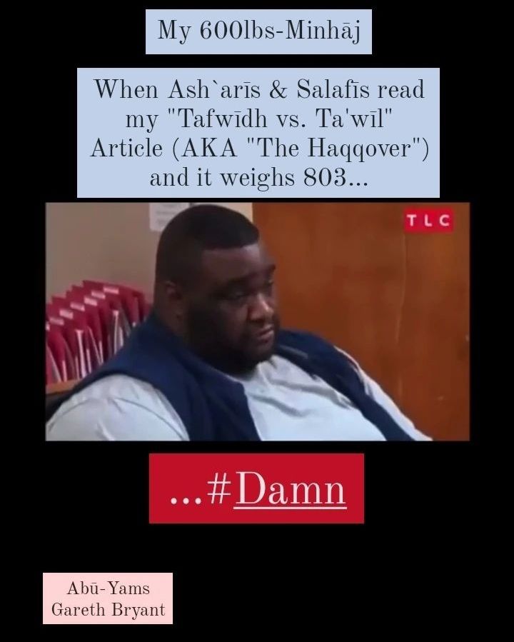 They’ve both a Dark-Reputation of co-signing Unjust-Takfīr/Blasphemy against Fellow-Muslims, simply because they’re Non-Ash`arīs. Faheem Lea a Known-Fanboy/Flunky of Amin Muhammad, an Imām via the United States, who’s notorious for publicly making Unjust-Takfīr against Muslims whom’re Non-Ash`arīs. These two, amongst Others, are Ascribers of a Branch-Group of Ash`arism known as the Ahbāshīs…they’re the Madkhalīs of Ash`arism. The Madkhalīs, of course, posture themselves as the “Special/Elite-Forces” Version of Salafism.