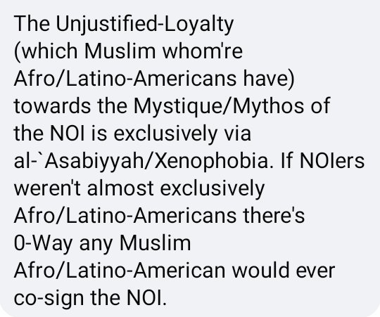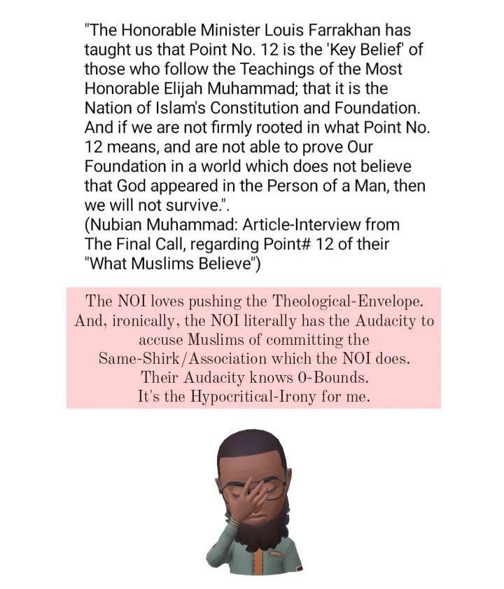 Especially amongst Muslim Afro-Americans: the Only-Reason how/why there’s Certain Muslims whom give the NOI a Pass is because they’re “Black-People”. It’s a Non-Debatable Fact, that NOI-Theology directly mimics Judeo-Christian Theology. Yet, ironically, Certain Muslim Afro-Americans are significantly less hostile towards the NOI as opposed to Other Non-Muslims. How’s it even possible to give 1-Group of Non-Muslims Theological-Passes when they commit the Same-Types/Kinds of Theological-Atrocitues as any other Non-Muslim & are just as Islāmophobic as any other Non-Muslims?!!! Because, without any Doubt: anyone whom pontificates/promotes ash-Shirk against Allah is an Islāmophobe by default/definition.