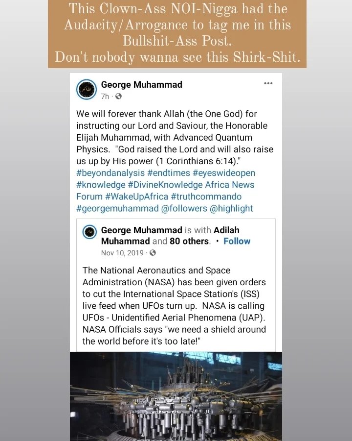 To any/all of the Muslims whom continuously choose to dick-ride the NOI (Nation Of Islam), in spite of their Religio-Theological Disrespect against al-Islām which is Mutawātir/Common-Knowledge…you’re Pathetic-Individuals. Muhammad (Peace be upon them) stated: “And be an Imma`ah/Dick-Rider.”.