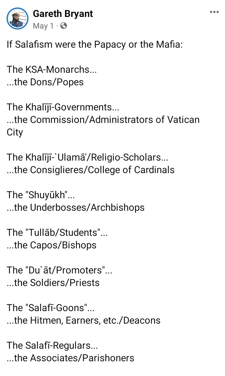 the 40-Hadīth Majmū` is centered around correcting al-Khuluq/al-Adab (Character/Behavior). Yet, These-Bozos displayed Disgusting-Khuluq/Adab. For example, one of the Ahādīth/Narrations from the 40-Hadīth Majmū` of an-Nawawī, Muhammad (Peace be upon them) stated: “The Muslim are those whom keep Fellow-Muslims safe, from the Evil of their Tongue/Speech & the Evil of their Hand/Actions.”. What was displayed against Fellow-Muslims via Fouta-Masjid was literally the Total-Opposite of what Muhammad defined a Muslim to be. This clearly wasn’t an “Isolated-Incident” by any Means. Salafī-Takovers of Masājid/Mosques, Islāmic-Centers, etc. is nothing new…they’ve literally been doing so for Decades. Not only via Philly by the way…Salafī-Takeover Mindset/Mentality has occured within Muslim&Non-Muslim Countries all across the Planet. The Manifestation of Salafī-Takeover is derived from the Salafī-Network itself: Locations & Individuals whom want to play “Tough-Guys”…they literally attempt to behave like how Mafiosi are portrayed via Entertainment.