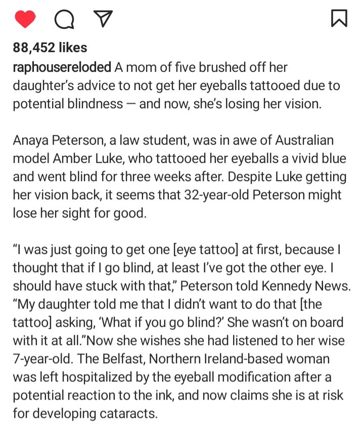 Let’s stay on-topic with the self-harm: When getting a Tattoo, what happens? Well, you get stuck with a needle-machine, for quite awhile, depending on how sophisticated the Tattoo in-question actually is: there’s significant, (unnecessary) pain/blood-loss, that one endures, for no Islamically sound, or universally-intelligent reason, at all. Then, there’s the (very-high) risks of getting infections, diseases (most common HIV, Hepatitis, etc.). You then have the ink of this Tattoo tainting your blood, which could, in the near/distant future, cause many (potential) health-complications, as a result of this ink inserted into the body.