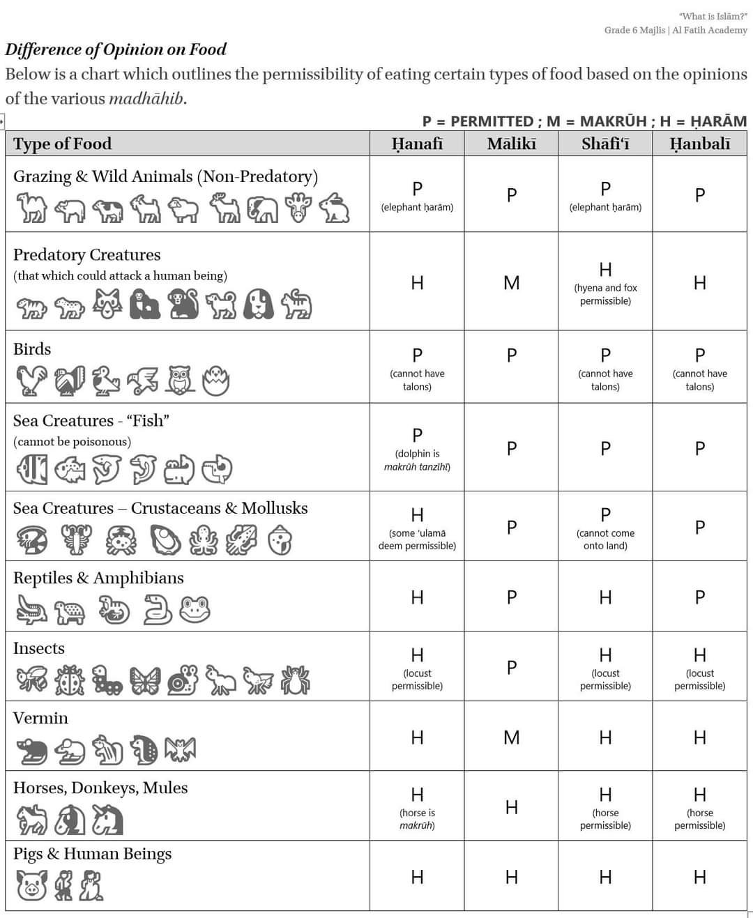 I’ll mention 1-Example pertaining to al-Ikhtilāf (Religio-Scholastic Differing) which divides Muslims across Madhab-Lines…Dietary-Ahkām/Regulations: