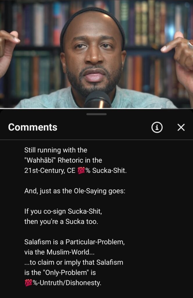 As per this…Salafīs are always unjustly/unfairly accused of ascribing to al-Kharajiyyah/Religio-Extremism. This is 💯%-Untrue/Dishonest. More often than not: Certain-People will accuse Other-People whom don’t dick-ride the same Religio-Views which they dick-ride as being both a “Wahhābī” & a “Khārijī” at the Same-Time. Now, Kharajism & “Wahhābism” are used interchangeably, in spite of the Fact that “Wahhābism” isn’t a Real-Thing. Ironically though, Kharajism is very much a Real-Thing. It’s even existed prior to the Revelation of The Qur’ān, as per the People-Of-Noah using al-Kharajiyyah to drive them away from al-Islām via ash-Shirk/Association (via Paganism). Or, referring to the Children-Of-Israel whom disobeyed Moses&Aaron (Peace be upon them both)…how their Rabbis&Priest distorted the Tanzīl/Revelation sent to them & killed/murdered, plotted to kill/murder the Anbiyā’/Prophetic-Individuals whom were sent to them. Even via the Lifetime of Muhammad (Peace be upon them): they directly warned against al-Kharajiyyah & referred to al-Khawārij/Religio-Extremists as “Kilāb-un-Nār/Dogs of the Fire”. Moreover, any Muslim can be a Khārijī/Religio-Extremist…al-Kharajiyyah literally has 0 to do with al-Hizbiyyah (Religio-Sectarianism) & everything to do with al-Khuluq/al-Adab (Character/Behavior). Any Muslim can realistically become a Khārijī, whether they’re Religio-Sectarian or Non Religio-Sectarian.