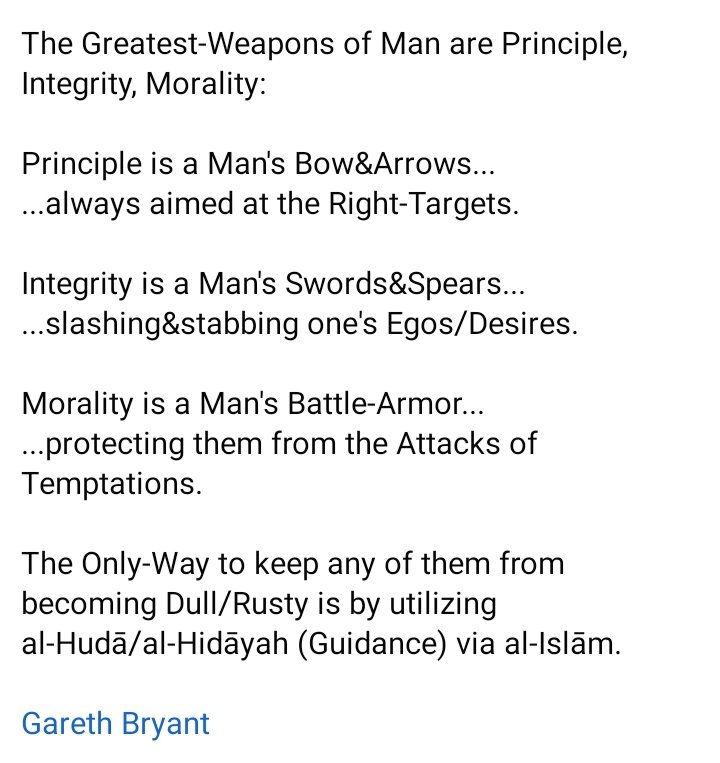 The Aforementioned-Post details which Kinds/Types of Weaponry necessary to combat via ad-Dunyā/The Mundane. Each of what I’ve mentioned is for each of the 3-Dimensions of the Human-Being: