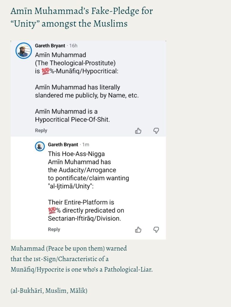 And, of course, this isn’t complete without Supporters of Amīn Muhammad, whom constantly/consistently co-sign Amīn Muhammad’s Jahālah (Sucka-Shit).