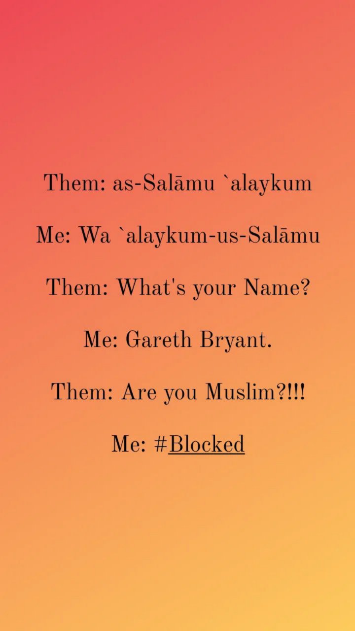 If you have to ask me whether I’m a Muslim, then don’t even greet me