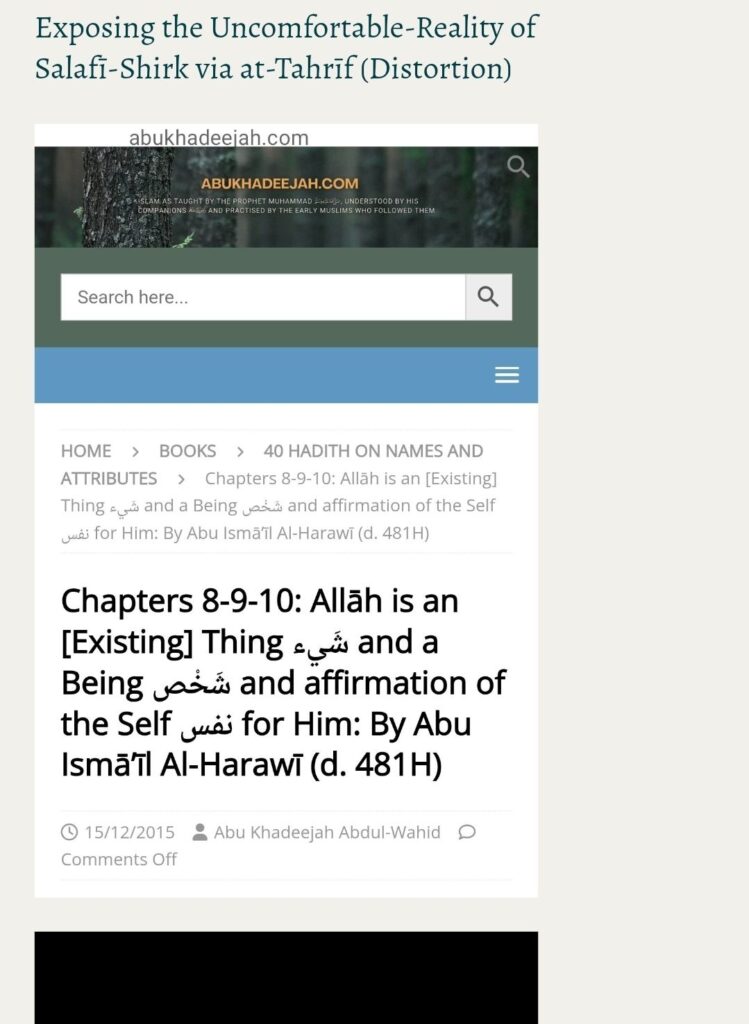 Chapters 8-9-10: Allāh is an [Existing] Thing شَيء and a Being شَخْص and affirmation of the Self نفس for Him: By Abu Ismā’īl Al-Harawī (d. 481H)