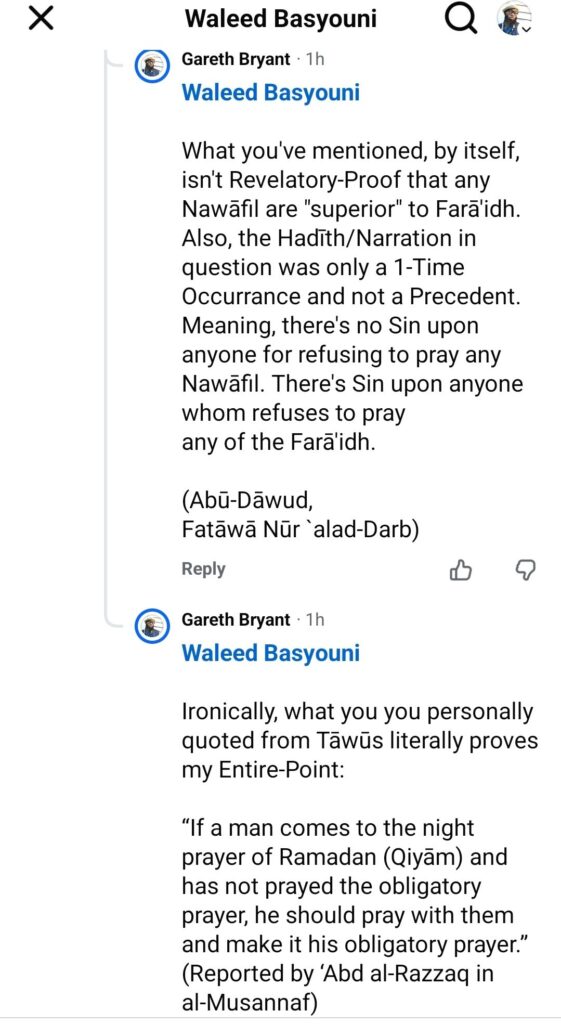 And, ironically, my Entire-Point was highlighting the Reality that al-Farā’idh wil always matter more than an-Nawāfil.