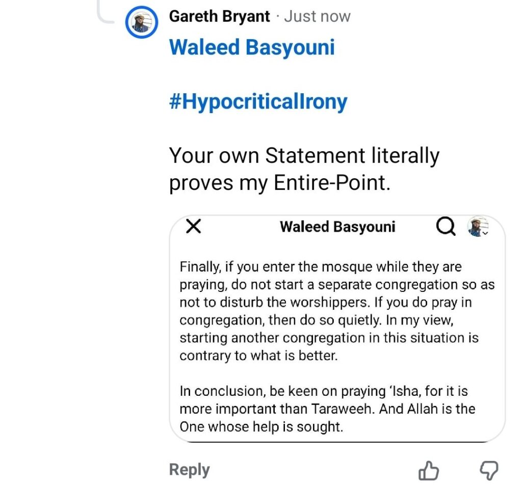 Walīd Basyūnī unintentionally proved my Point via their own Post.