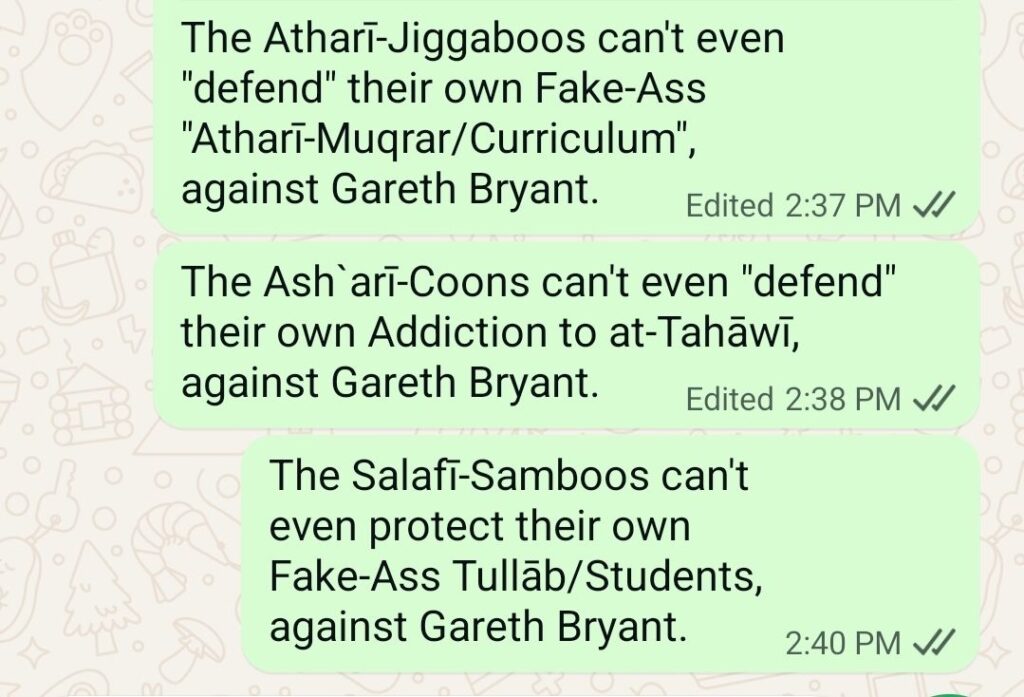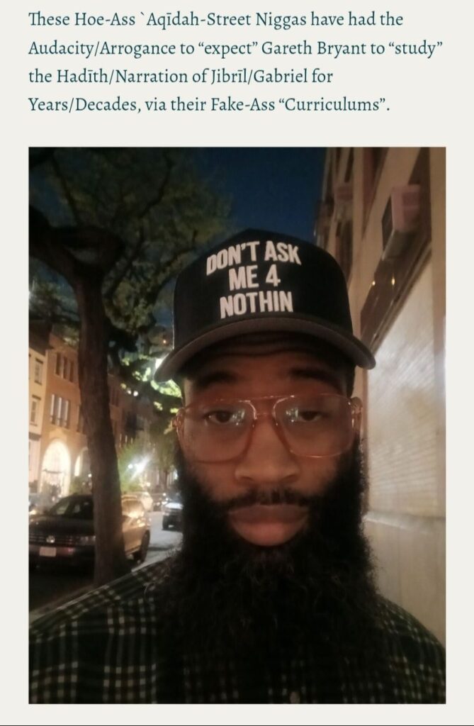 This details that Gareth Bryant will callout anyone, regardless of whom they are and/or whom they think/feel they are. Gareth Bryant is literally tired of these Hoe-Ass Sectarians attempting to use Religio-Academic Feudalism against the Average/Regular-Muslim. (Equally) Gareth Bryant is also tired of these Hoe-Ass Sectarians parading their Illusions of Scholarship around, attempting to “impress” and/or “intimidate” Resistance against their Sectarian Sucka-Shit.